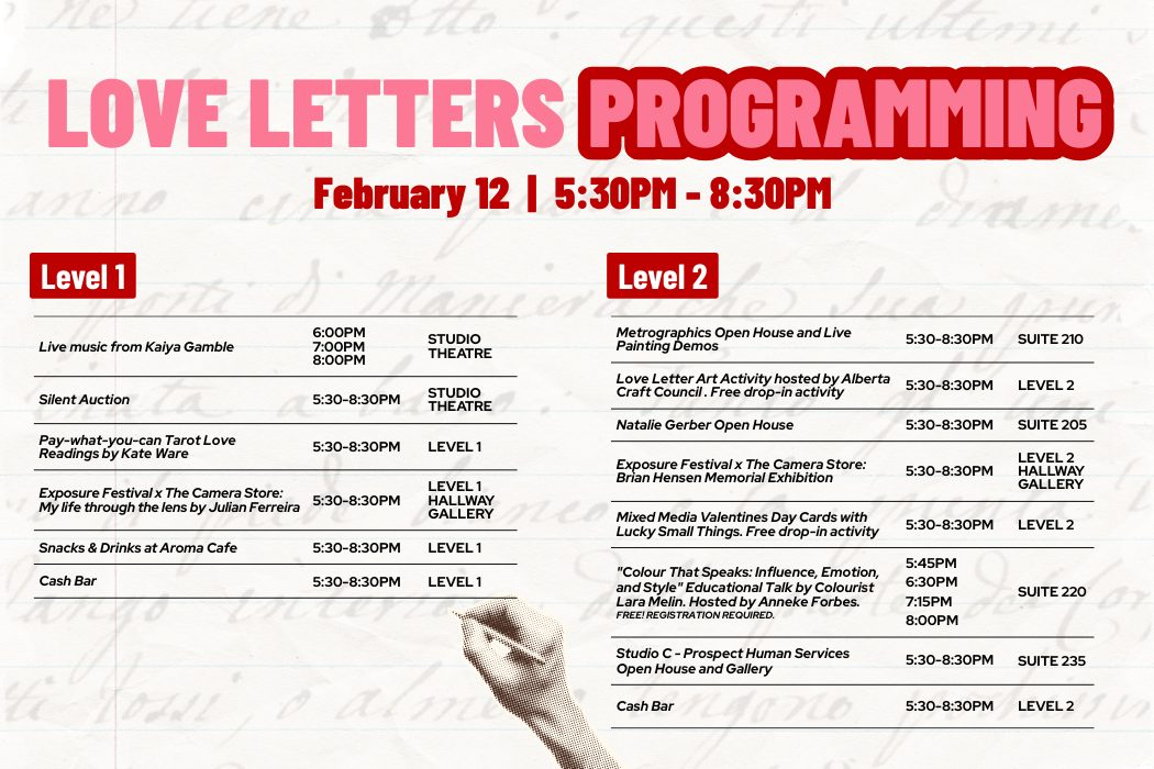 This February, cSPACE Marda Loop invites you to fall in love with creativity at LOVE LETTERS: our Valentine-inspired Showcase Series event!